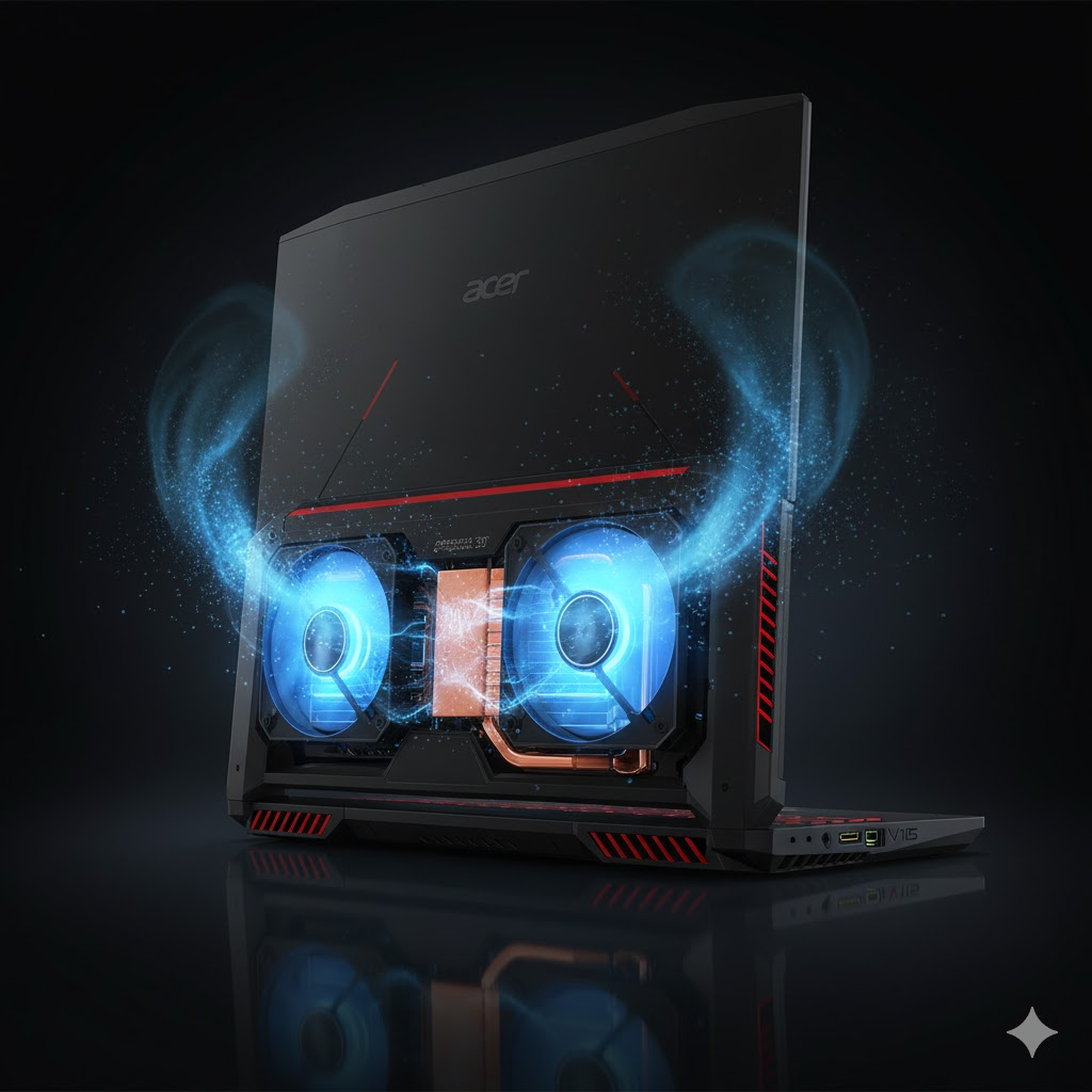 Untuk menjaga performa tetap stabil, Acer Nitro V15 dilengkapi sistem pendingin ganda dengan dua kipas dan empat ventilasi udara. Desain saluran udara yang diperbarui membantu membuang panas secara efisien tanpa menimbulkan suara berlebihan.
